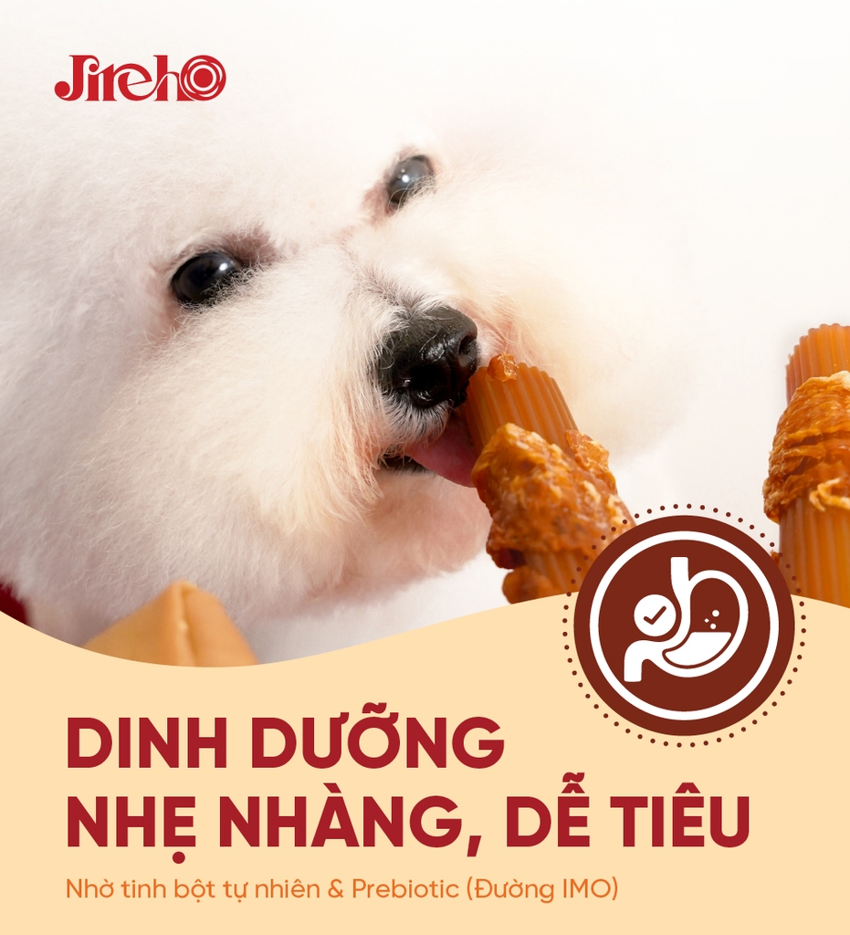 Que cuộn Gà & Đậu phộng sử dụng khoai mì và khoai tây - nguồn carbohydrate dễ tiêu hóa, giúp cung cấp năng lượng nhanh mà không gây cảm giác nặng bụng cho thú cưng. Bên cạnh đó, sản phẩm còn bổ sung IMO (Isomalto-oligosaccharide) - một dạng prebiotic nhẹ, hỗ trợ cân bằng hệ tiêu hóa và nuôi dưỡng lợi khuẩn đường ruột.