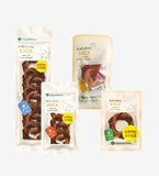 - Thịt gà sấy mềm: Gà, Glycerin thực vật (dầu dừa), Tinh bột, Muối.