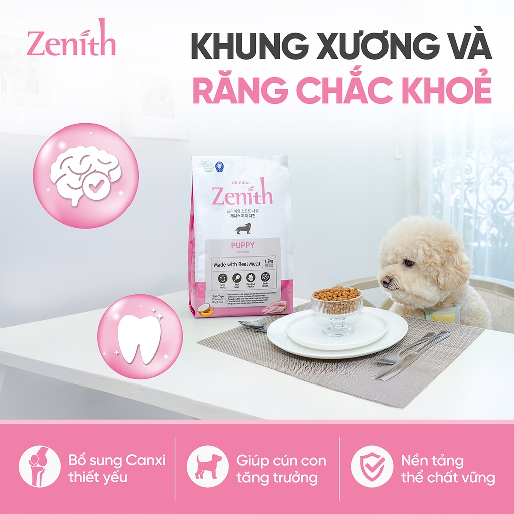 Zenith Original Puppy Chicken được thiết kế phù hợp cho chó con ở giai đoạn đang phát triển. Sản phẩm đặc biệt phù hợp với những bé kén ăn, có hàm răng non nớt nhạy cảm với thức ăn cứng, và những bé có hệ tiêu hóa nhạy cảm cần được chăm sóc đặc biệt.